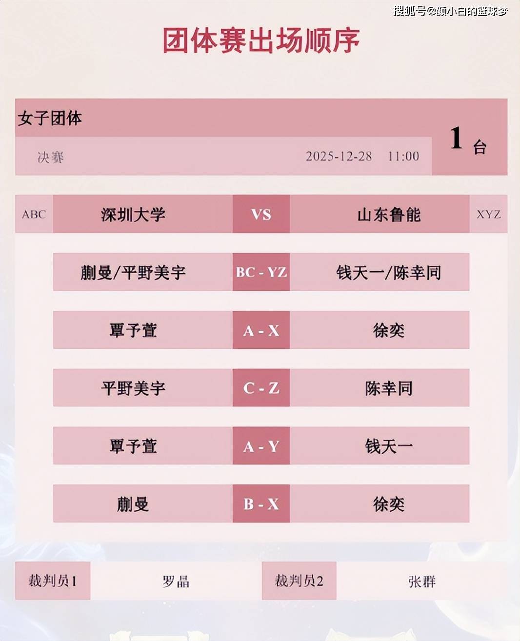 2026世界杯赛程,世界杯投注,世界杯球队阵容,世界杯预测,世界杯直播/全网最全的2026年世界杯专题报道,提供赛程时间表、球队阵容、赔率分析、投注预测与实时比分,助你掌握每一场焦点战况。北京时间12月28日,2025年乒超总决赛女团决赛,深圳大学3-1击败山东鲁能夺冠,深圳大学在没有孙颖莎的情况下拿到了总冠军,弥补了2024年亚军的遗憾。而山东鲁能作为卫冕冠军在决赛中表现很差,这都是因为世界第二王曼昱因伤无法登场。