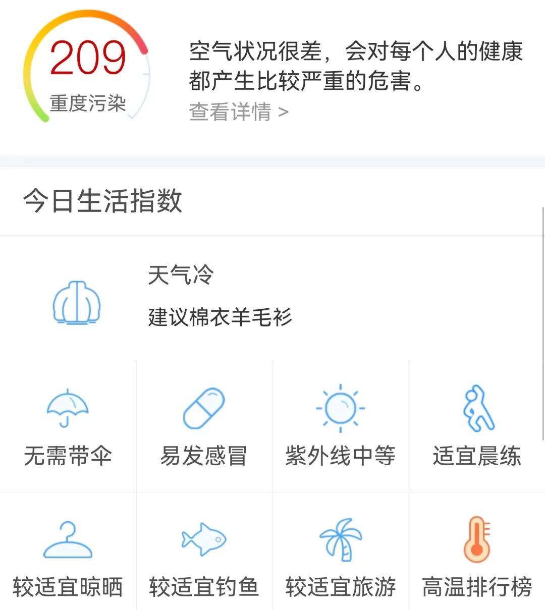 儿童、老年人及心脏病、呼吸系统疾病患者避免长时间、高强度的户外锻炼,一般人群适量减少户外运动。