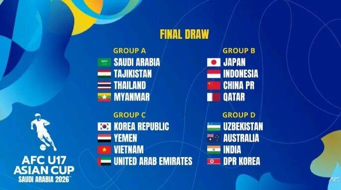 北京时间2月12日,2026年U17亚洲杯小组赛抽签仪式在马来西亚吉隆坡的亚足联总部举行。