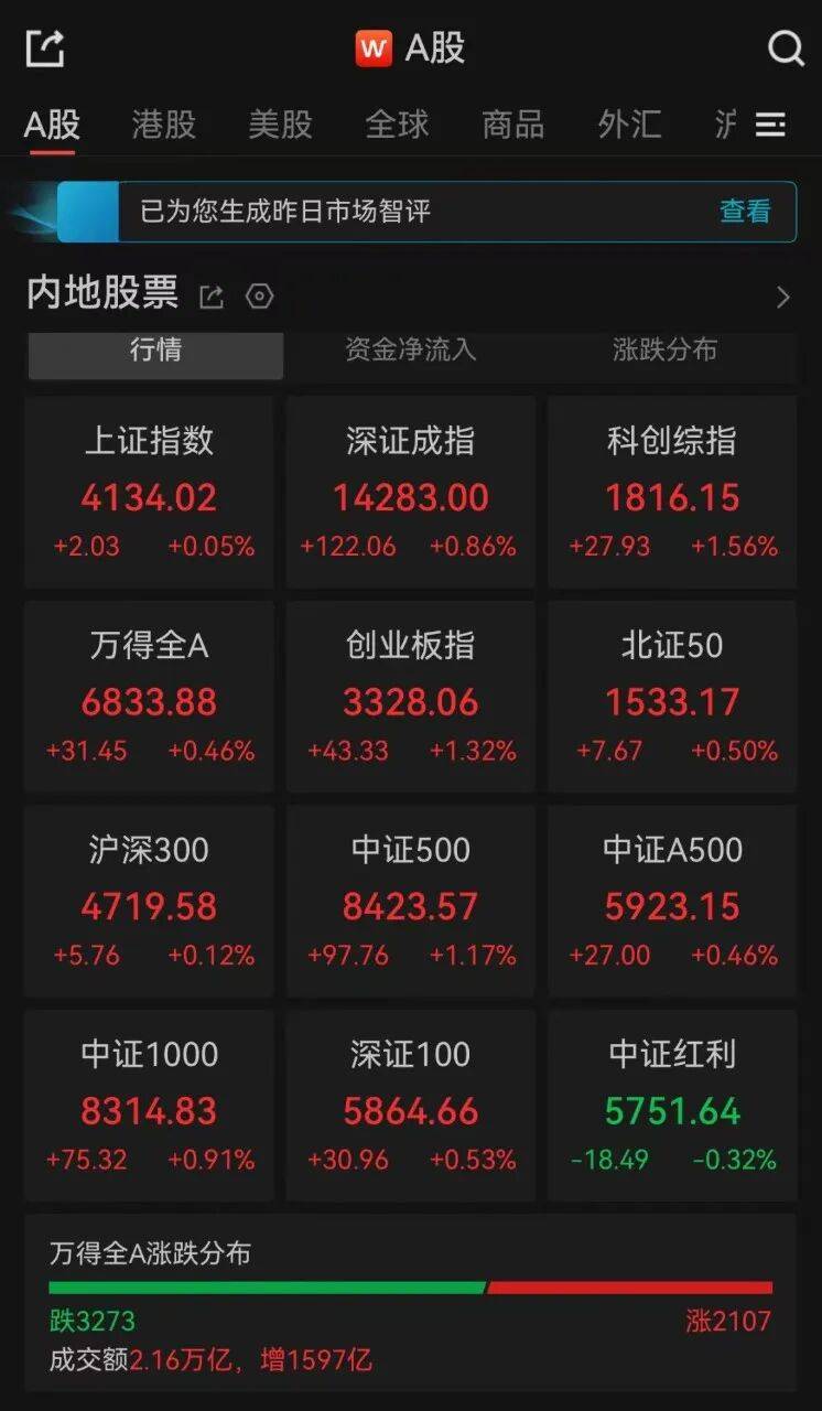 6、12日,A股三大指数高开,随后深指、创业板指震荡上行。截至收盘,沪指涨0.05%,深证成指涨0.86%,创业板指涨1.32%。全市成交额2.16万亿,超3200只个股下跌。