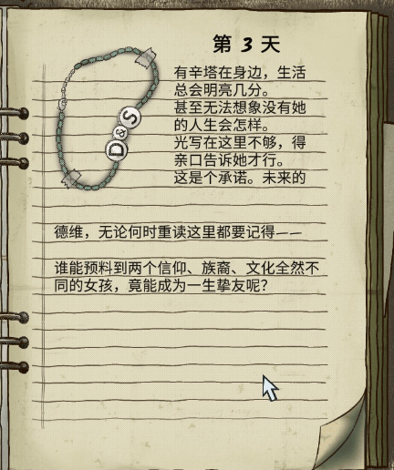 这或许也是为什么,游戏十分罕见地设计了由玩家书写的环节:在每天德维写下的日记后,玩家可以自己记下这天发生的事情和自己的感受。