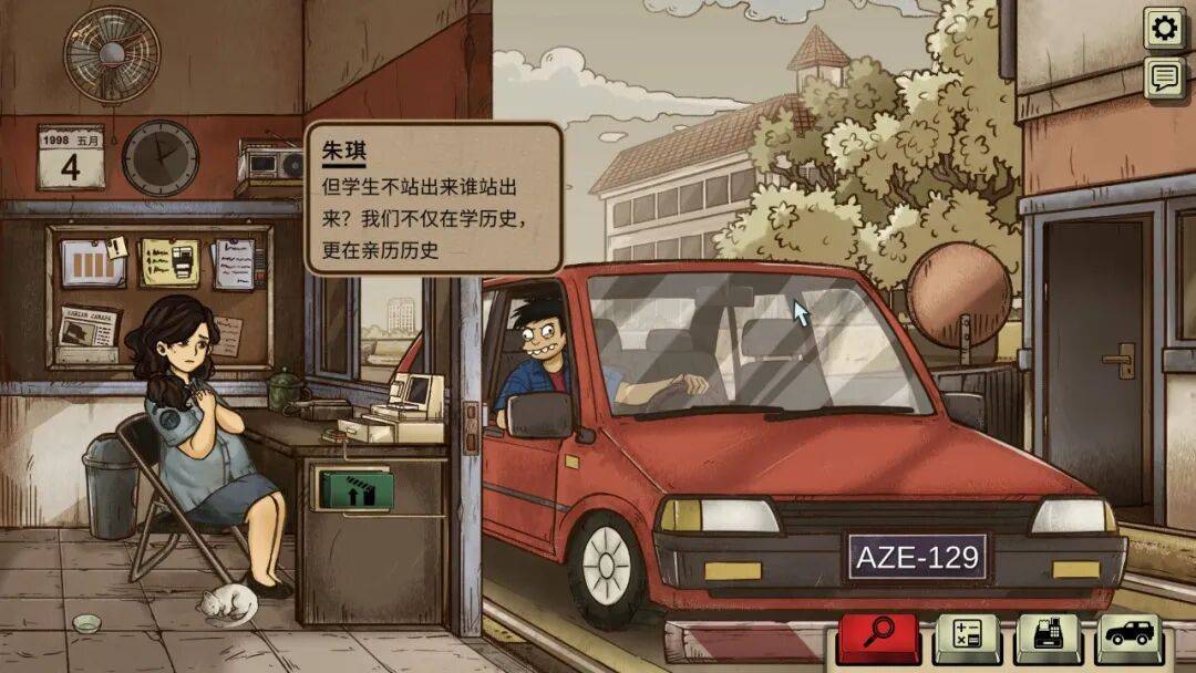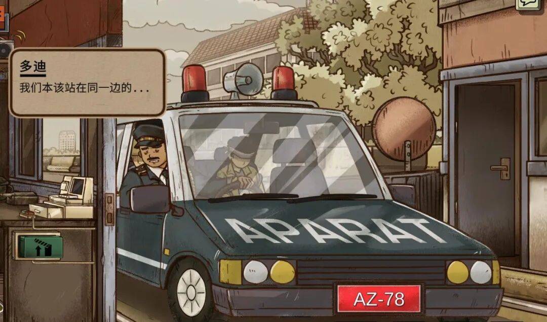 在游戏中,有一个名为朱琪的大学生,他一边忙于论文,一边给报纸画着讽刺当权者的漫画,并最终因此在暴动前夕失踪。