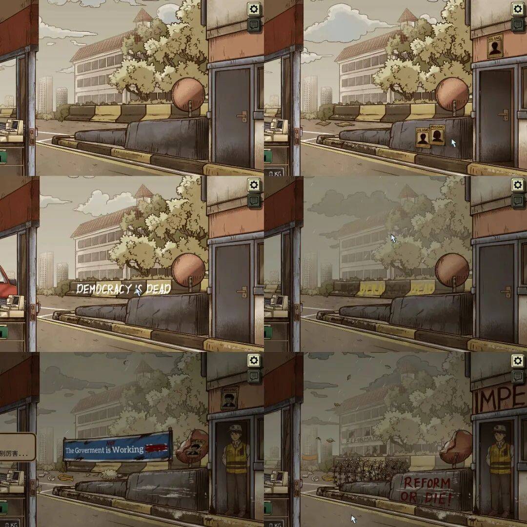游戏开始于这一年的4月末。我们操控的女性主角德维已临近生产,还要每天兢兢业业上班来维持生计,因此并没有亲临抗议和暴乱的现场。那种山雨欲来的压抑,只能通过报纸、电视新闻,还有工作时的所见所闻间接感知。