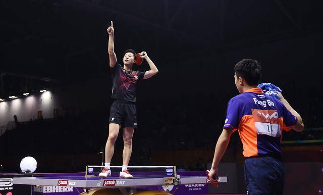 2024年2月25日,马龙在韩国釜山进行的2024年国际乒联釜山世界乒乓球团体锦标赛男子团体决赛中回球。最终,中国队3比0战胜法国队,获得冠军。新华社记者 姚琪琳 摄