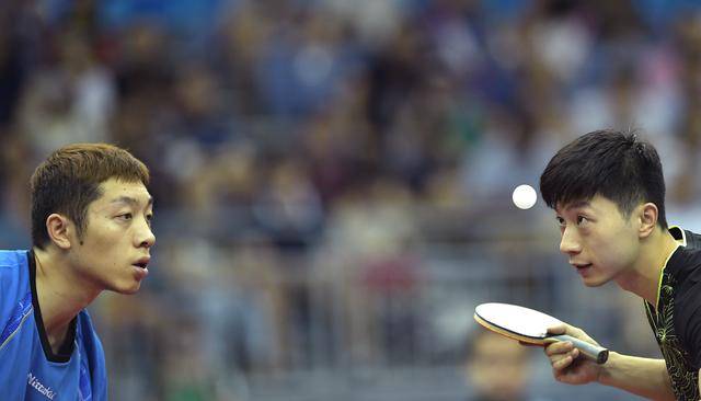 2017年9月3日,北京/上海联队组合马龙(右)/许昕在第十三届全国运动会乒乓球男子双打八分之一决赛中。最终,他们获得亚军。新华社记者 薛玉斌 摄