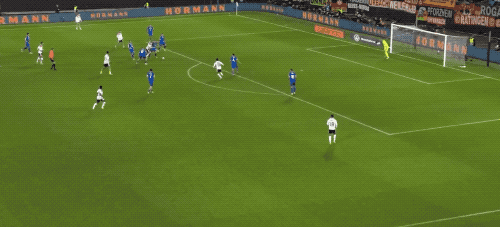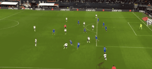 第3分钟,德国队在前场连续一脚传球,维尔茨45度传中力量有点大,格纳布里勉强头球,没有什么威胁。