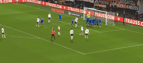 第50分钟,杜布拉夫卡用手接到后卫的回传,德国队获得禁区内间接任意球,基米希一踩,萨内的爆射被后卫挡出。