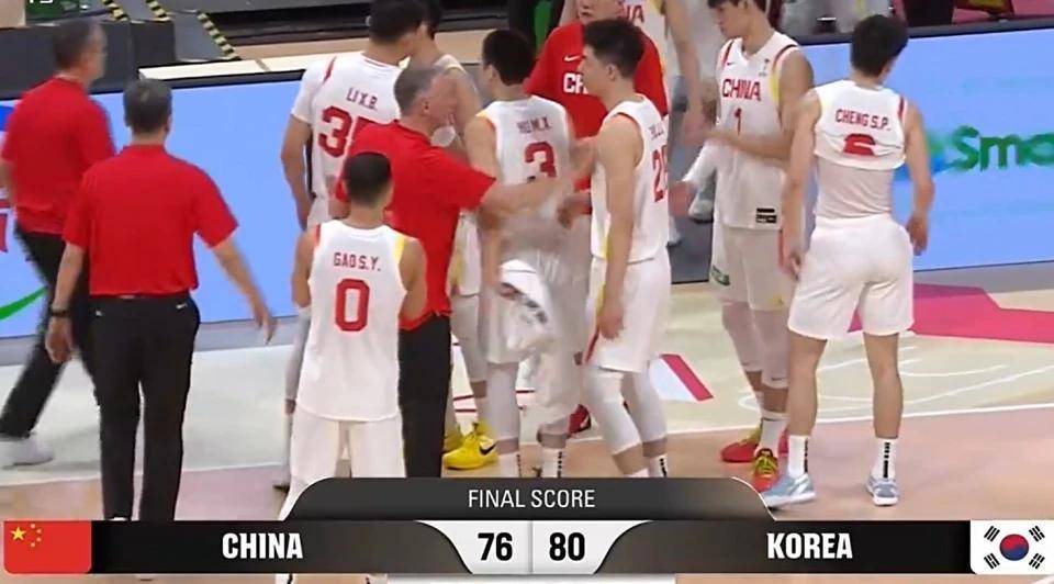 决定胜负的末节,韩国队一度将比分拉开至18分。中国队在危急时刻两次请求暂停,布置战术,力求扭转颓势。在比赛的后半段,中国队打出了一波10比0的进攻高潮,并在距离比赛结束1分53秒时,将比分追至68比77,迫使韩国队请求暂停。此后,张镇麟如神兵天降,连续命中关键三分,中国队在比赛还剩1分12秒时,将比分追至74比79,仅落后5分。终场前21秒,张镇麟更是上演抢断反击,造成对方犯规,两罚全中,将比分改写为76比79,将悬念留到了最后一刻。尽管中国队再次获得球权,但张镇麟两次外线出手未能命中,最终,中国男篮以76比80惜败于韩国队。